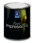 The various effects available from Faux Impressions ™ Latex Glaze are accomplished by applying 1 or more layers of colored glaze over a base coat. Since the Latex Glaze is translucent (tinting creates a transparent glaze and mixing with paint creates a semi-opaque glaze), the basecoat color influences the finished appearance. It is a recommended practice to preview color choices on a 2 ft by 2 ft practice board prior to painting your project area.